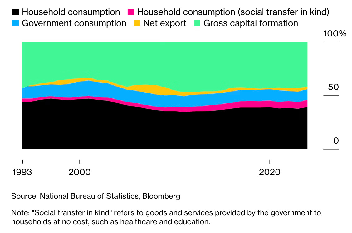 The disproportionately low share of domestic consumption, at less than half the economic output, has been a persistent distortion in the Chinese economy.