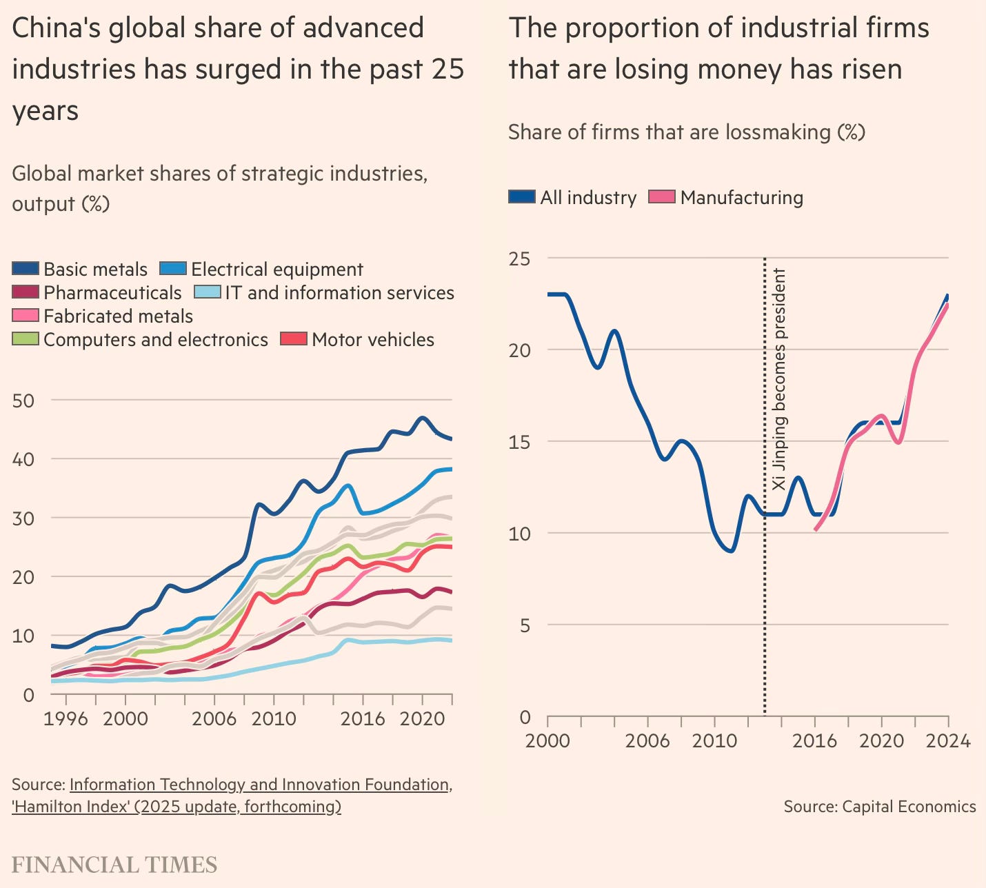 For each success story like BYD or Huawei, there are countless others who are bleeding subsidies, making losses, and will collapse. Analysis by ASR finds that over 25% of listed non-financial firms had earnings before interest and tax-to-interest coverage ratio below 1 in 2024, up from around 10% in 2018.
