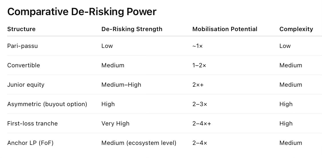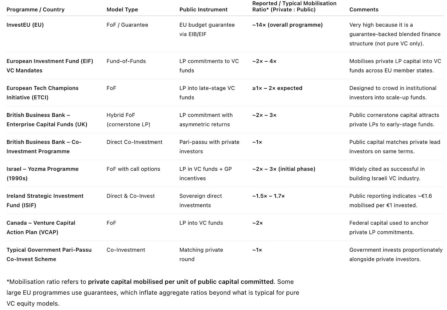 Here’s the list of a few such public funds from Europe and elsewhere, assessed in terms of their mobilisation ratios (or private capital raised per unit of public fund).