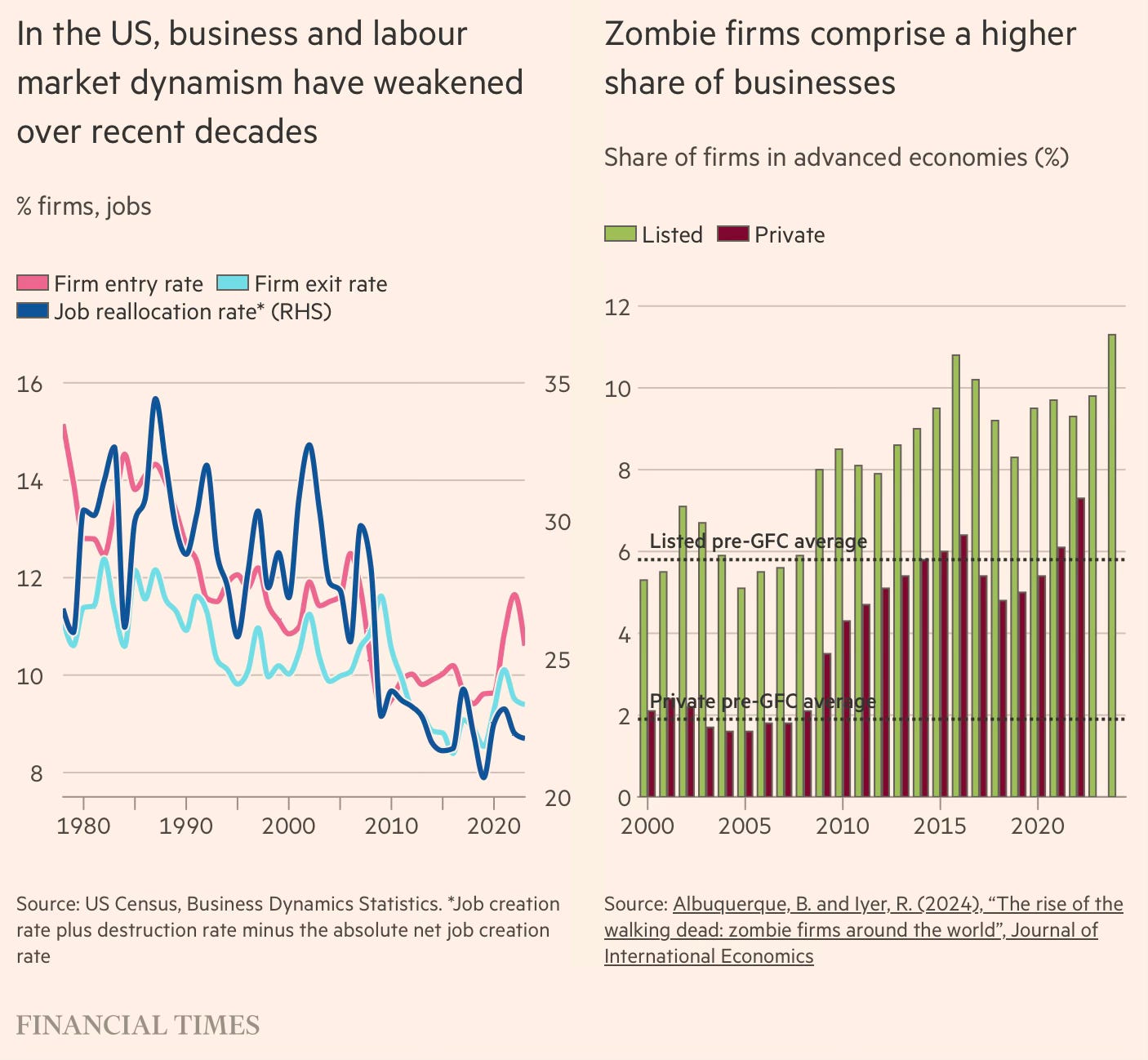 The extended period of cheap money has distorted incentives by misallocating resources, keeping capital and people locked up in less productive parts of the economy, keeping alive zombie firms and funds, and weakening economic dynamism.
