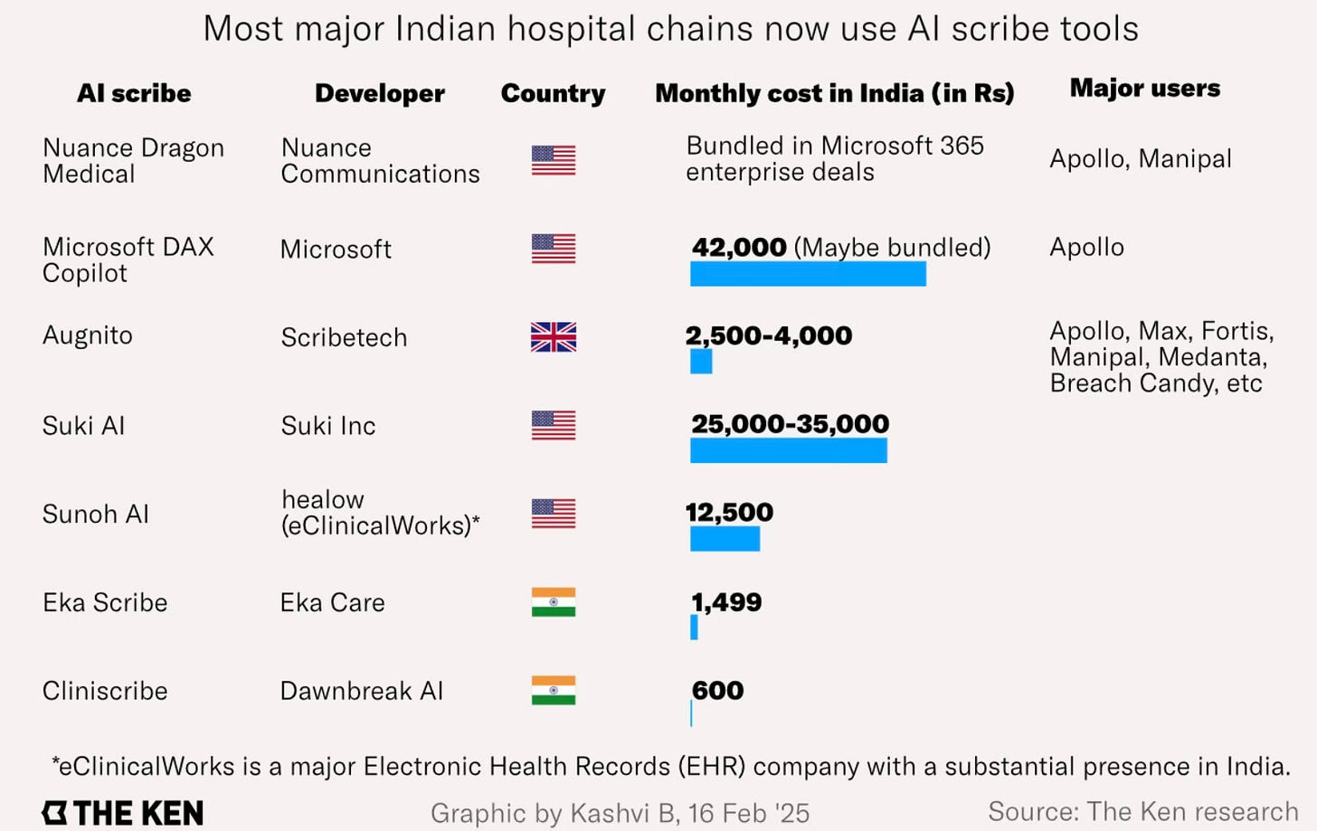 The Ken has an article on how the health systems in India are adopting AI applications, specifically ambient AI transcription apps (always-on AI systems that use contextual interpretation to transcribe speech without explicit prompts). The article highlights several important insights about not only AI-adoption but also generally startups in India.