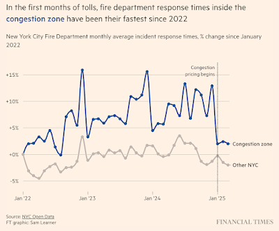 Several indicators suggest a sustained decrease of traffic into, within and around the congestion zone. MTA data shows a 13 per cent drop in vehicles entering the central business district in March against a historical average, plus faster movement through the bridges and tunnels that are often snarled with traffic. This is supported by data from analytics firm INRIX that also shows minimal changes on Manhattan bridges outside the zone. On the funding side, the $500mn that the MTA anticipates raising this year from securities ahead of a big bond issue has provided investment for projects including signal upgrades, station elevators and a line extension.