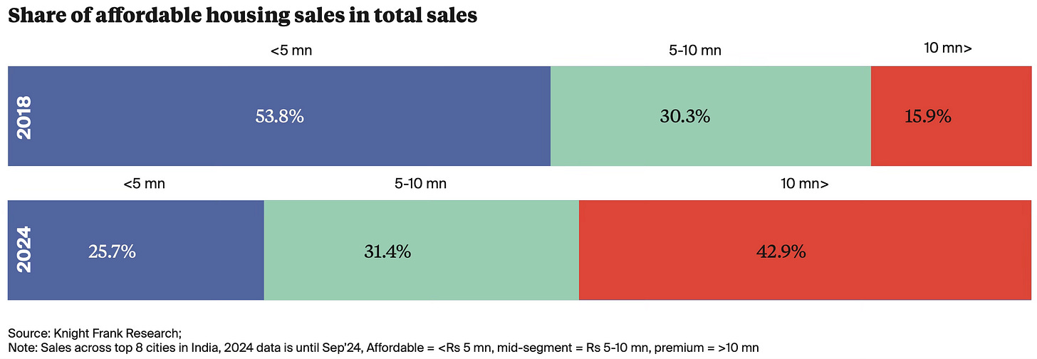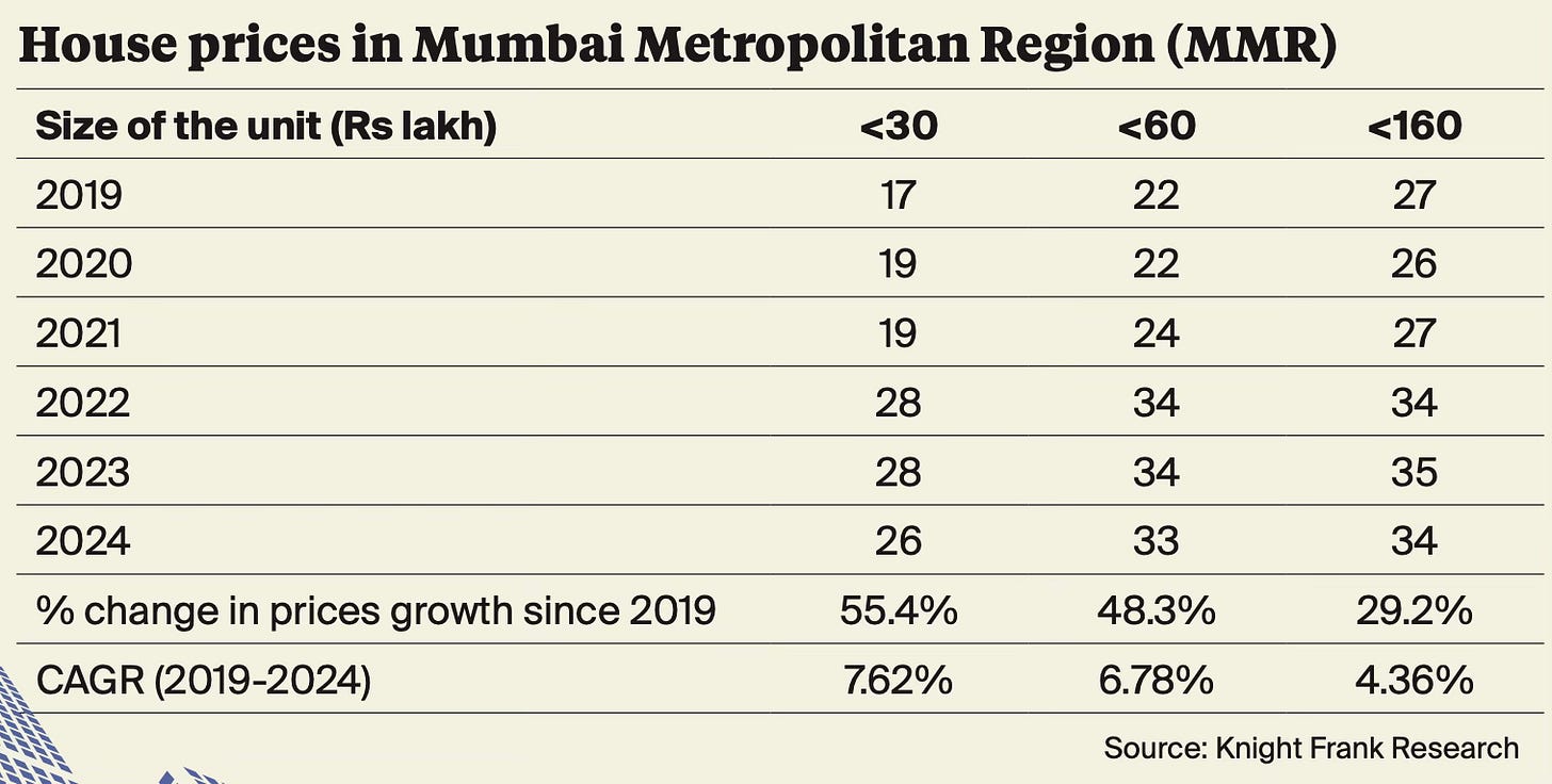 Further, the same report also shows that housing prices have risen much faster in the affordable income segment compared to the highest tiers. While this is for MMR, the situation is unlikely to be any different elsewhere.