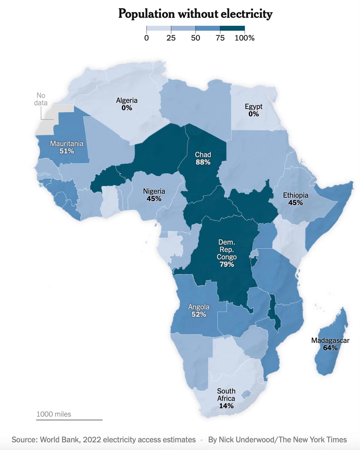 Africa’s electrification problem seems to be excessively concentrated in its hinterland areas, in the region sandwiched between the North and the South.