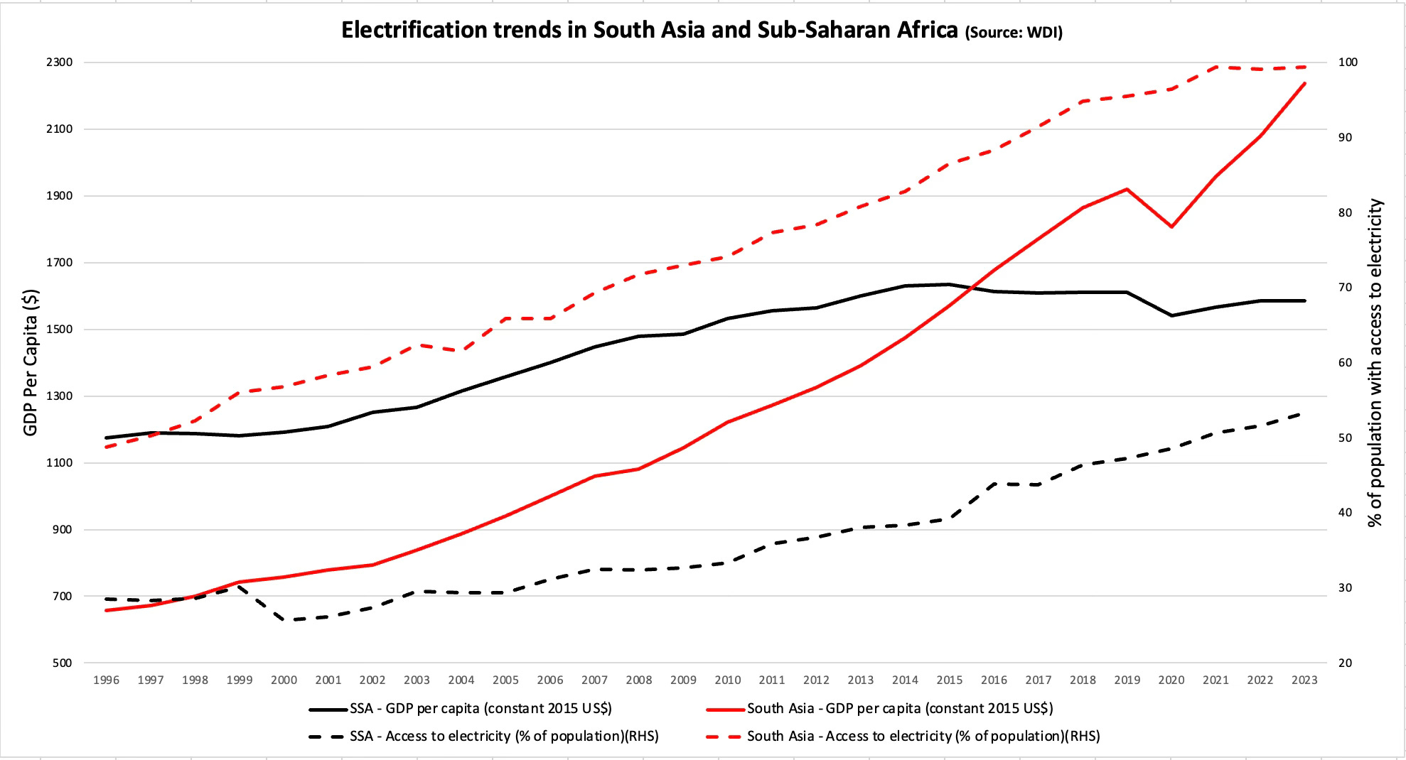 In this context, it’s also useful to see the contrasting fortunes of South Asia and Sub-Saharan Africa in electrification.