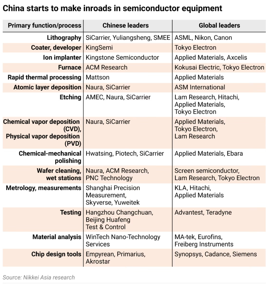 In fact, Chinese firms have been making inroads across the semiconductor equipment landscape.