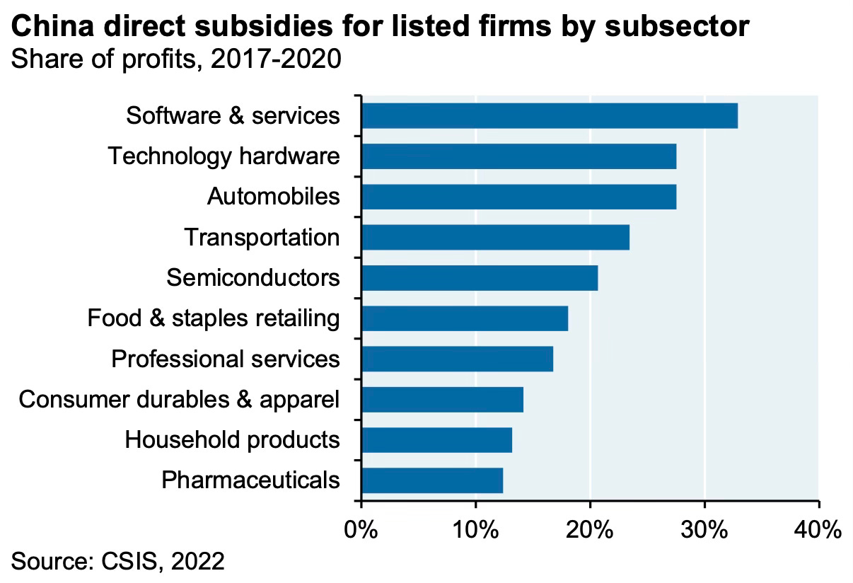 In many sectors, direct subsidies alone make up 15-35% of firm profits.