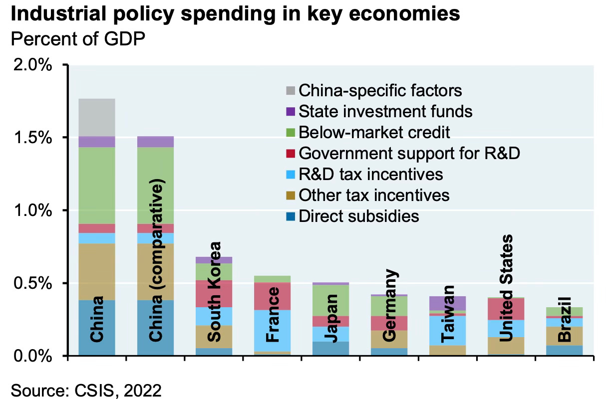 3. The JP Morgan report has some very relevant graphics on how mercantilist the Chinese economy is. The extent of industrial policy support far exceeds other major economies.