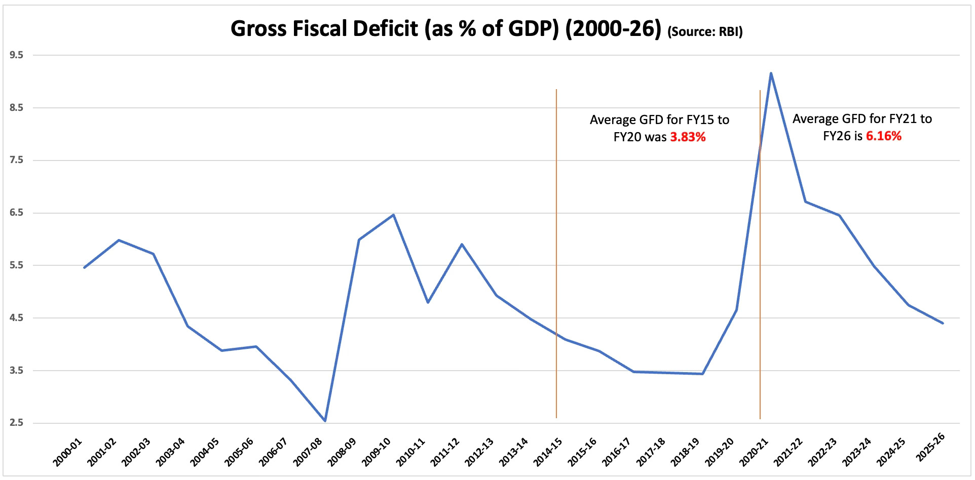 The country’s fiscal framework, enshrined in the Fiscal Responsibility and Budget Management (FRBM) Act, mandated governments to keep their gross budget deficits under 3% of the GDP, a benchmark that has no objective basis but was straight borrowed from the EU (where, too, it was forced without any objective basis). While it was never strictly followed (except for state governments), it nudged successive central governments not to stray too far from this number.