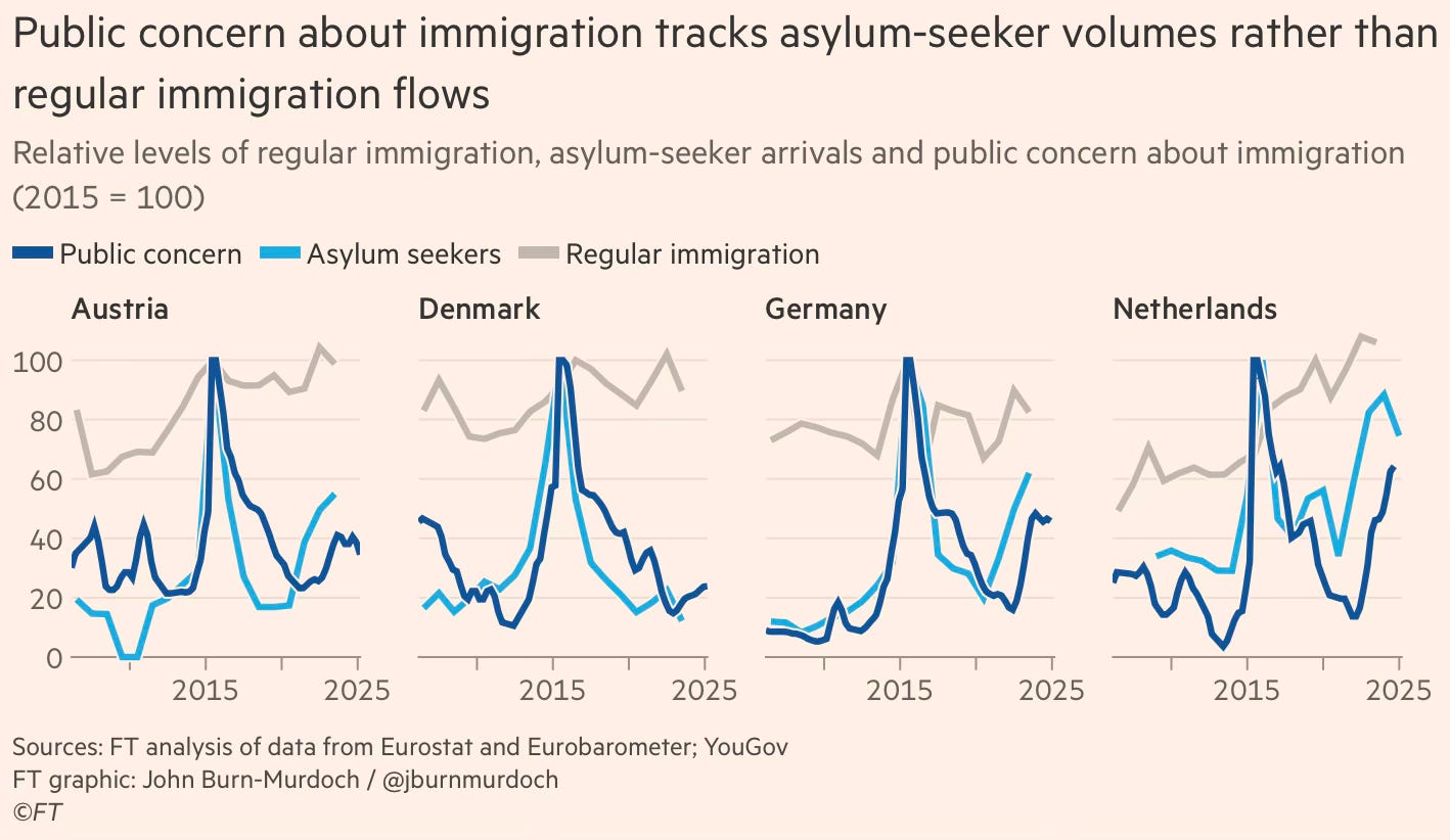 My analysis of decades of data on public perceptions and immigration levels shows that concern consistently tracks irregular migration and failed integration, not people coming to work and study. But Guenther’s research corroborates the consistent finding that the public does not want large flows of arrivals without visas, or a growing share of the population unable to speak the language (both of which have happened). A similar pattern is clear with crime, where rates of arrest and prosecution have fallen in several countries and lower-level disorder is on the rise. Sustained failure to curb these trends under governments of both the centre left and centre right has signalled to the public that the political class either doesn’t see this as a problem or is incapable of addressing it.