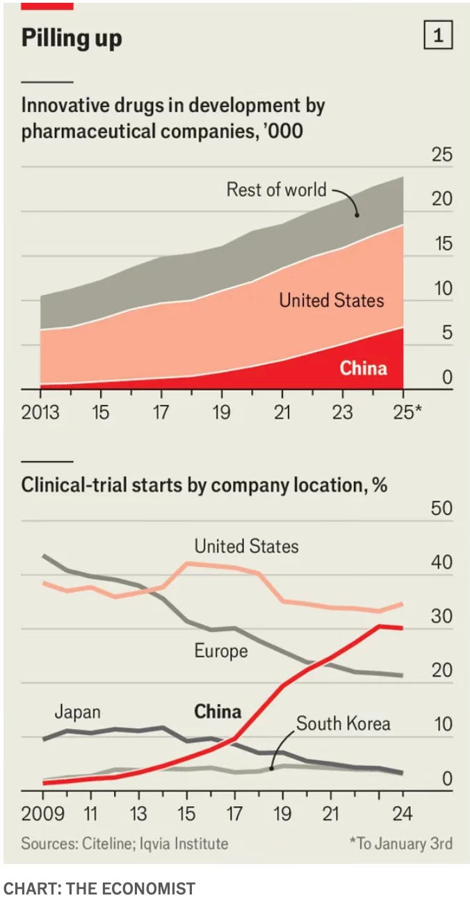These trends extend to the pharmaceutical industry in general, where Chinese companies have been surging ahead in the drug development trajectory, and ran a third of all clinical trials last year.