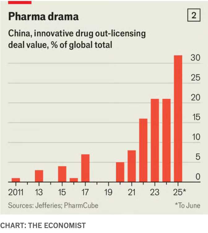 At the higher end of the value chain, Chinese firms made up nearly a third of all global licensing arrangements signed by the big pharma companies.