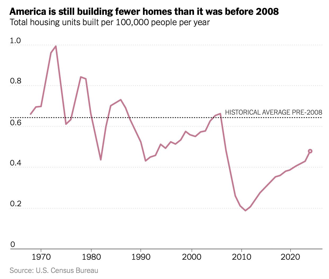 In 2025, America built fewer homes per 100,000 people than it did in 2005, 1995, 1985 or 1975.