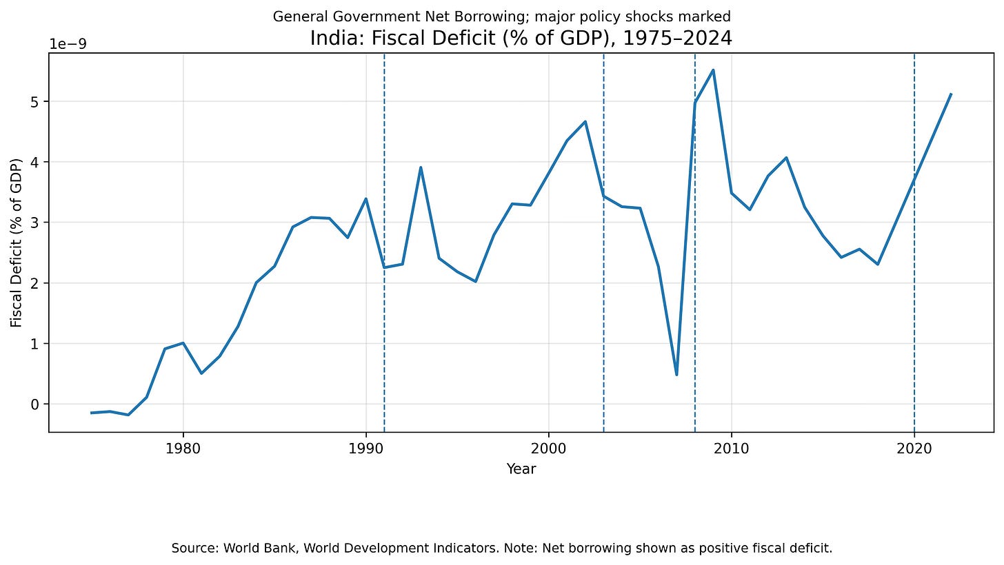 India’s growth experience shows that fiscal deficits support growth only in the short run and only when macro-credibility is intact. Sustained growth is driven far more by investment and macro-stability than by deficit expansion, while rising public debt increasingly constrains long-term growth.