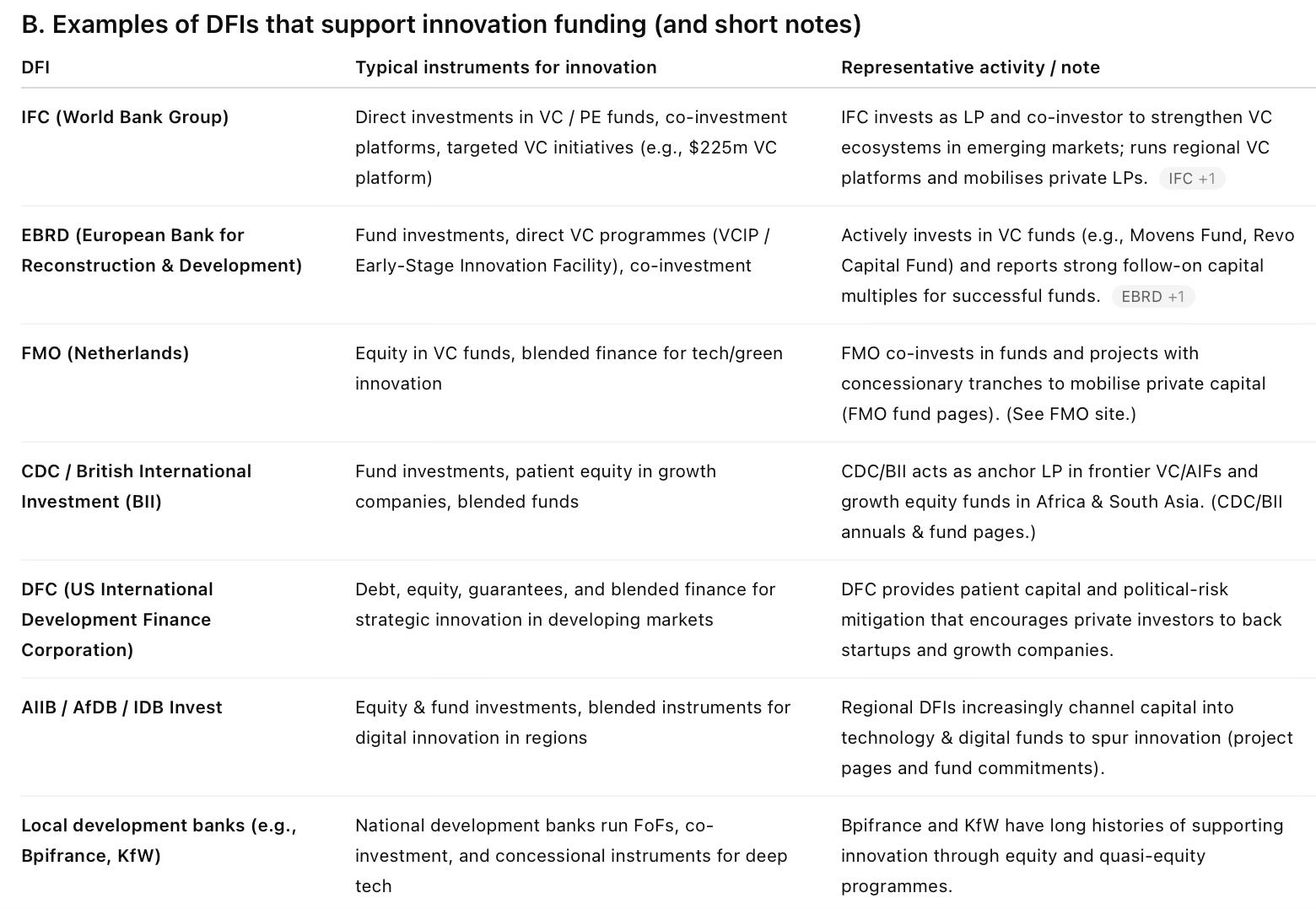 I am not sure how many of the above really invest in risky startup-driven innovations as opposed to investing in promising established SMEs in emerging industries.