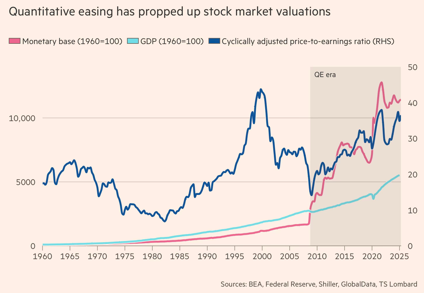 Thanks to quantitative easing, the US monetary base has expanded dramatically since the GFC, and equity market valuations have continuously soared.