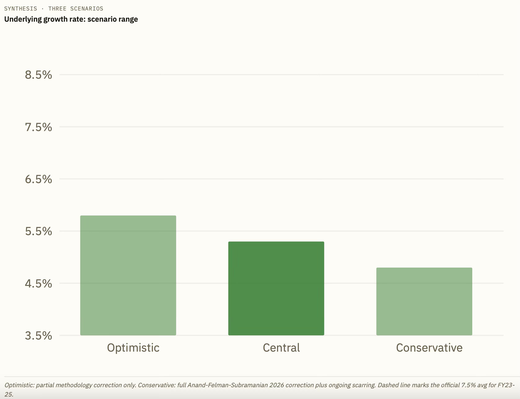 The sustainable growth rate of any economy is that which strips out the positive effects of the government’s fiscal interventions and the negative effects of economic shocks. This blog has held that, given its deficient human, physical, and financial capital, India’s neutral growth rate is about 5-5.5%.