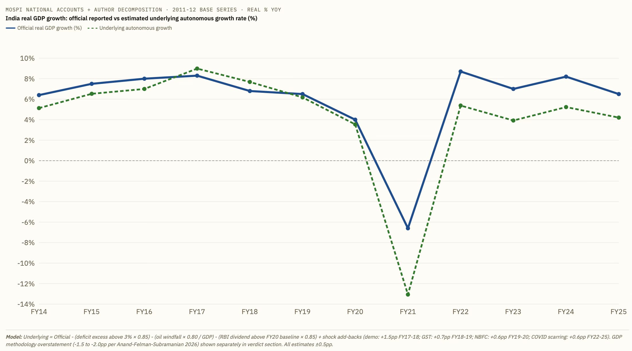 So, what has been India’s underlying neutral (stripped of the impact of policy interventions) economic growth rate?