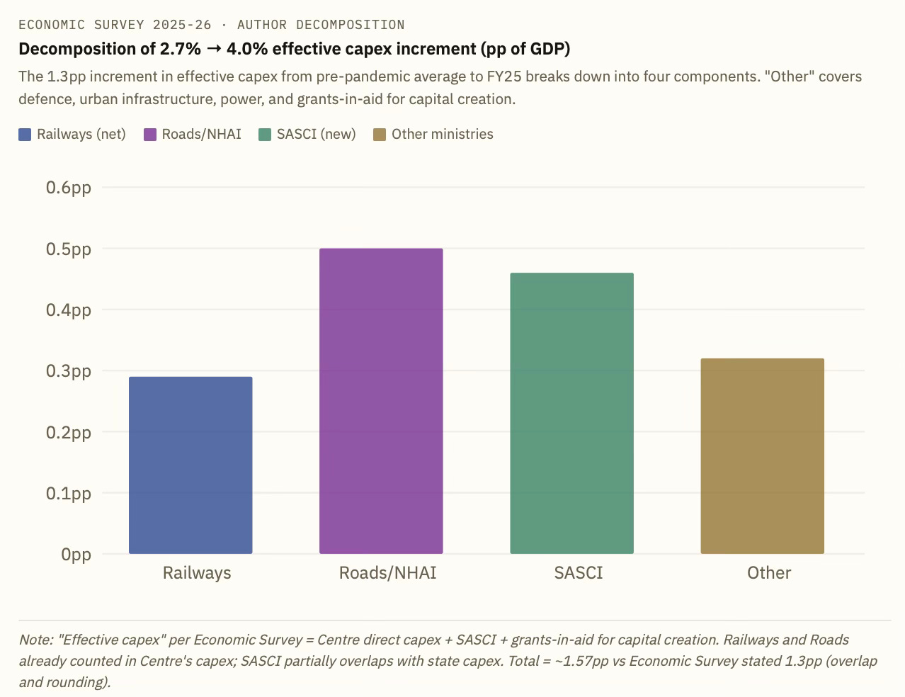 The net boost to fiscal balance resulted in a sharp spike in capital expenditure. It is to the credit of the government that it eschewed the subsidies and revenue expenditure route. This increase in capex includes taking on the budget account capital expenditures of NHAI and Railways. In addition, there has been the introduction of the zero-interest 50-year loan to state governments under the Special Assistance to States for Capital Investments (SASCI).